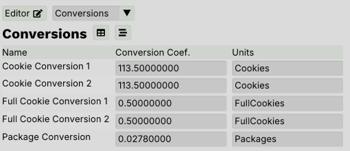 Conversions can all be edited simultaneously using the Conversions dropdown.