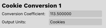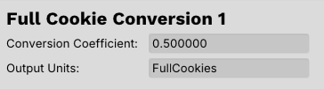 The next conversion will be converting individual cookies into full, assembled Oreo cookies. Each Oreo takes 2 individual cookies, so the conversion factor will be 1/2 = .5. Units cannot have spaces, so make sure you choose a name accordingly. Apply this conversion factor to the appropriate nodes on both baking lines.